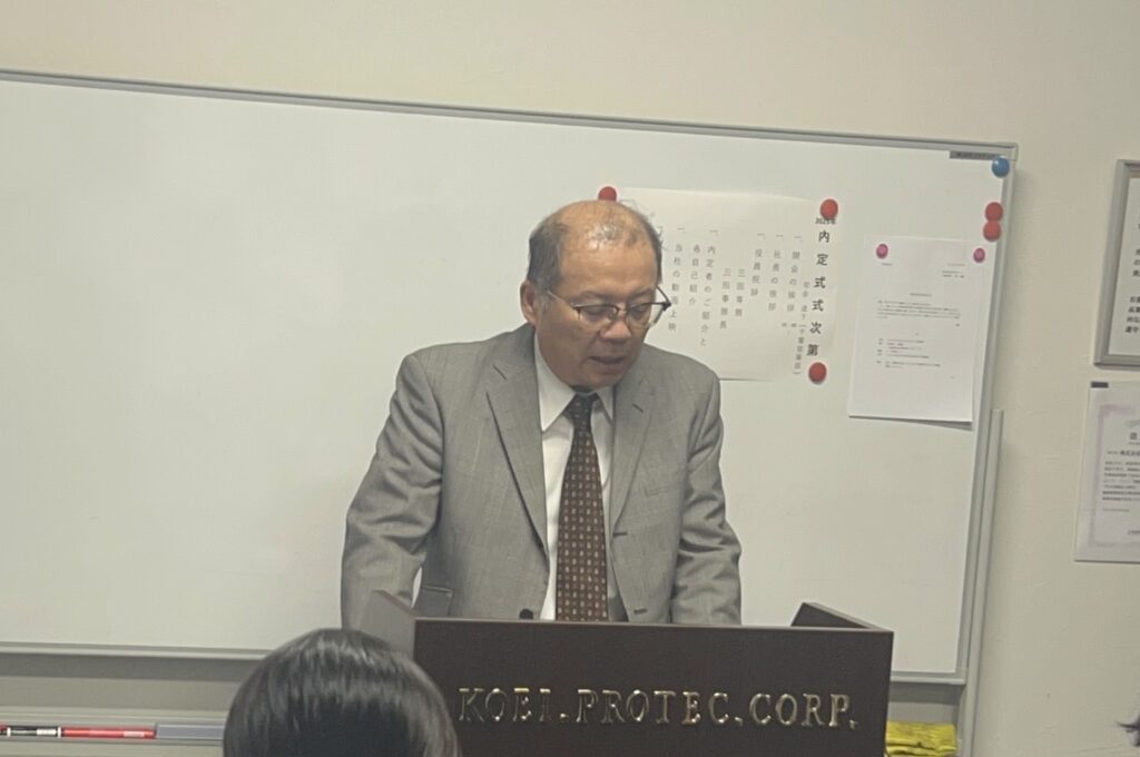 内定式では、社長からの激励の言葉や祝辞が贈られ、内定者の皆さんも真剣な眼差しで耳を傾けていました。