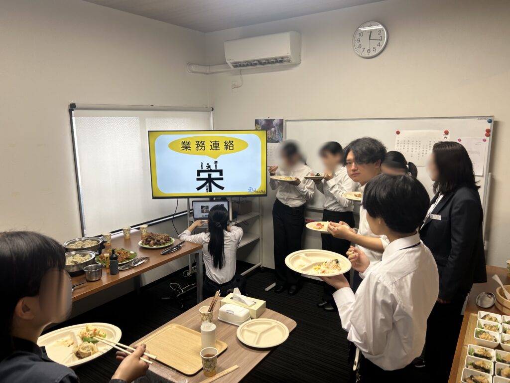 内定式の後には、立食形式の歓迎会も開催され、若手社員を中心に、部署の垣根を超えた交流が行われました。