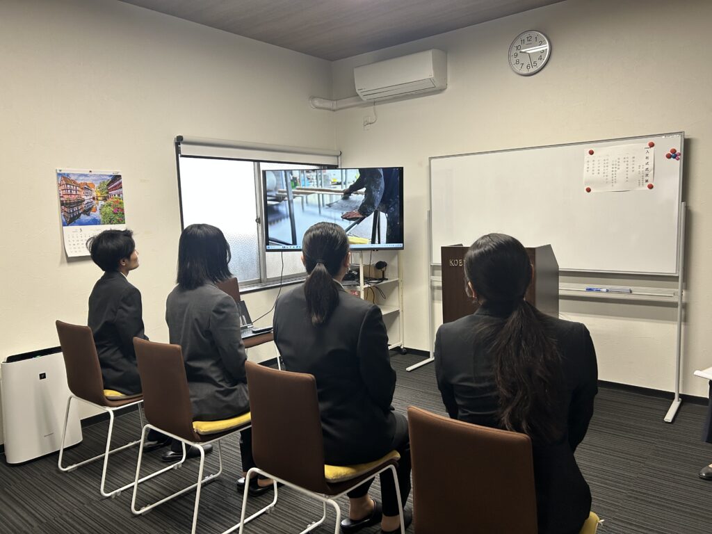 2026年度 大卒の新入社員を迎えて、当社の大阪本社で入社式が執り行われました。 今年は4名の新人が各職域に入社してくれました。 彼らに、光栄プロテックの未来を背負っていってもらえるよう私共もしっかり育成し、 仕事を通じて人間的にも成長してくれることを願っております。 式典では、役員からの祝辞がありました。 会社の歴史や、社会人としてしんどい時はどうするか、仕事が好きになるためのパズル術など、それぞれの視点で祝辞が述べられました。